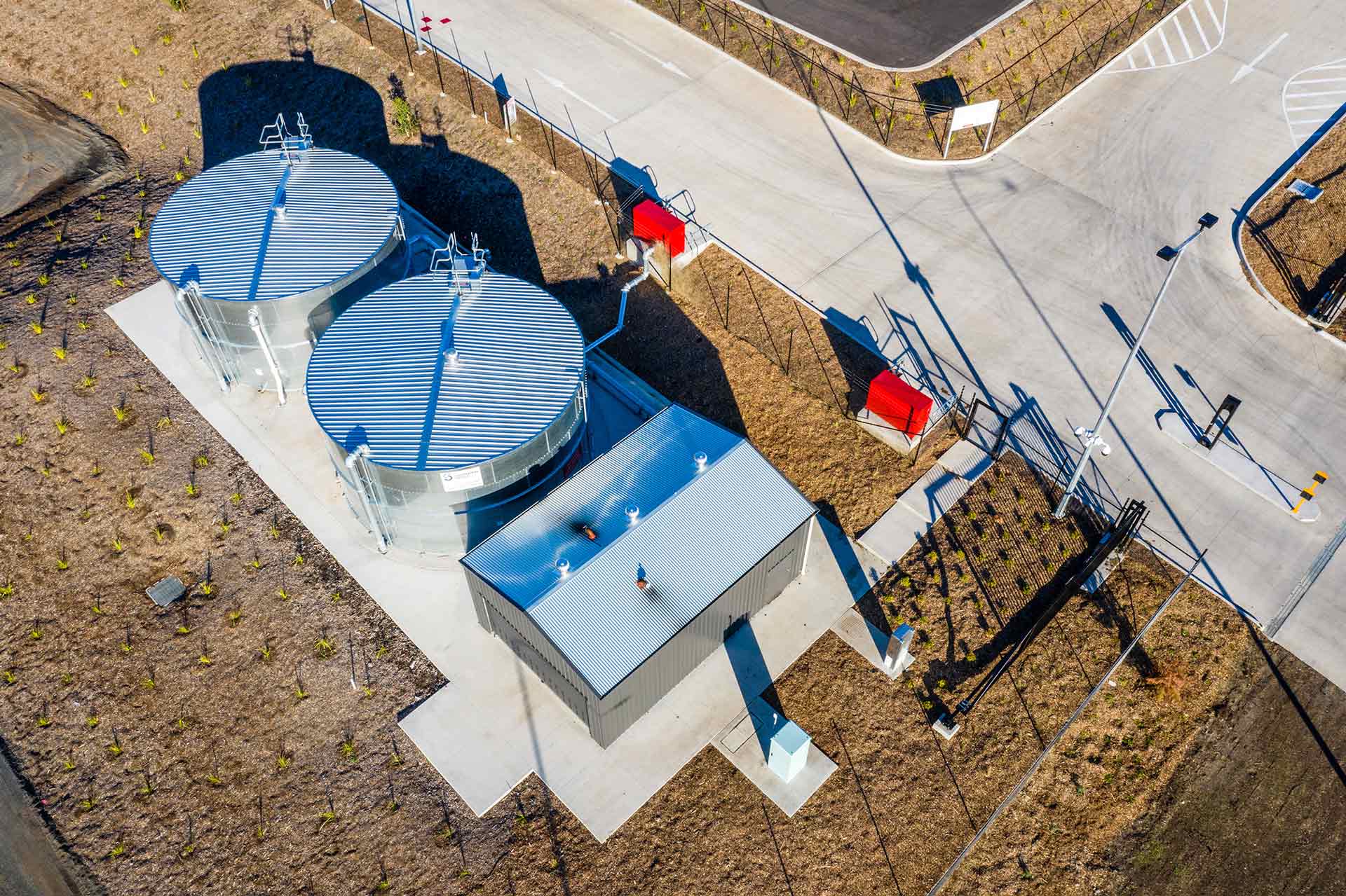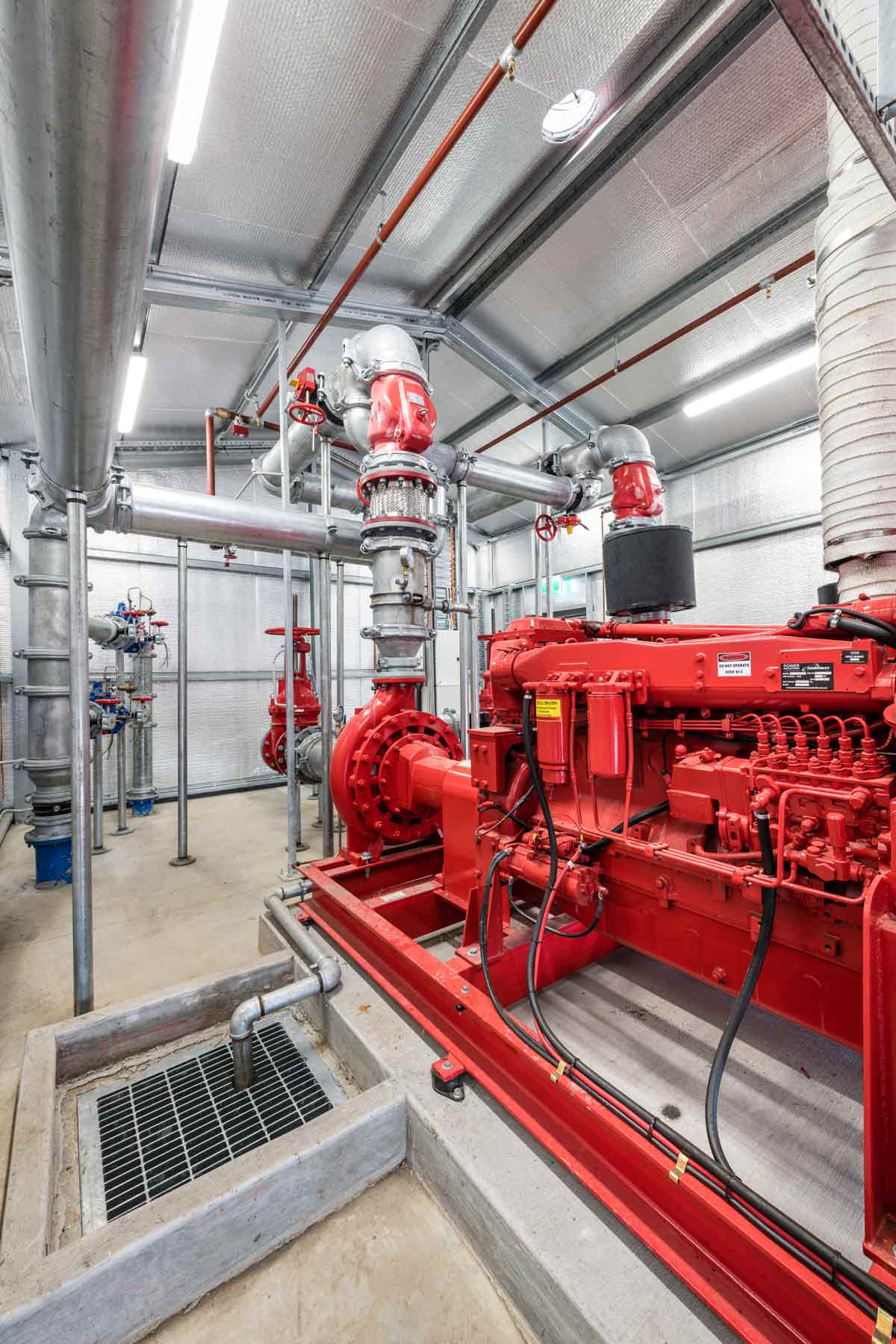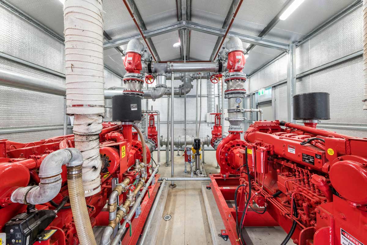 A 130L/S dual fire pump booster system, including 540Kl of fire water storage.