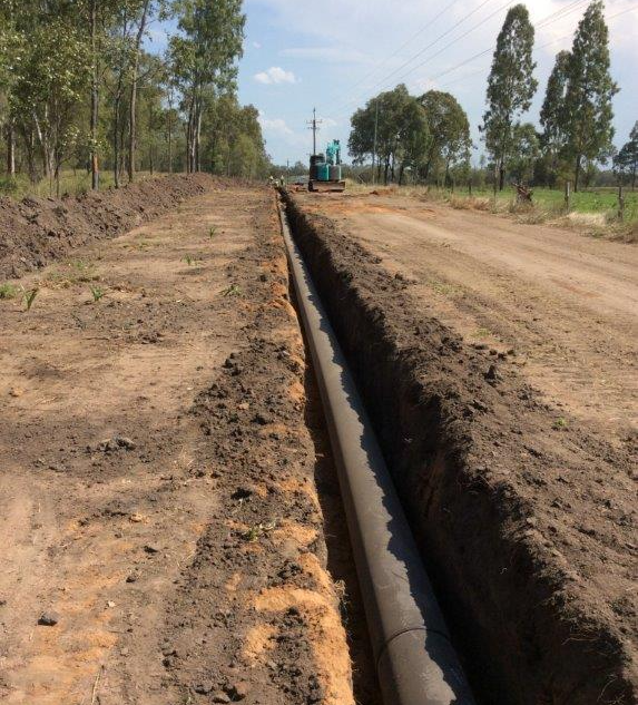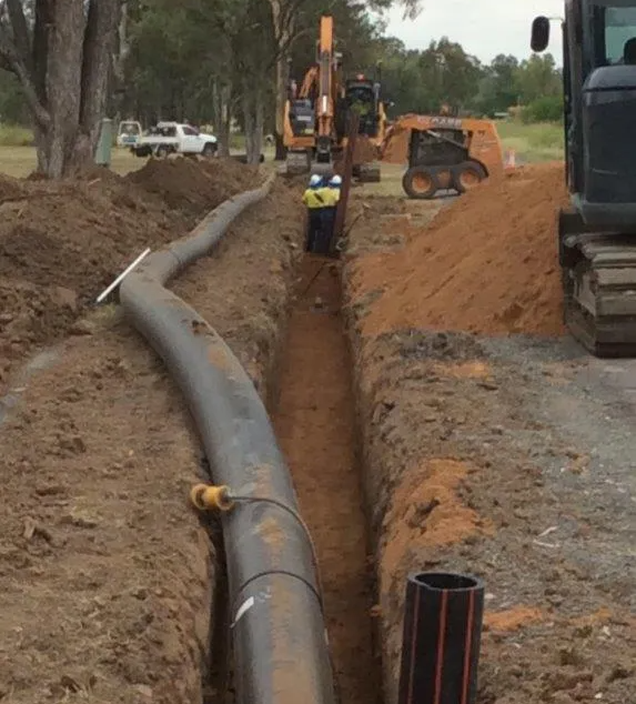 Our team consists of qualified tradesman and apprentices so our pipe laying team offer experience; and have delivered over 37kms of water mains from 100mm PVC to 525mm MSCL within regional and remote areas in the last few years.